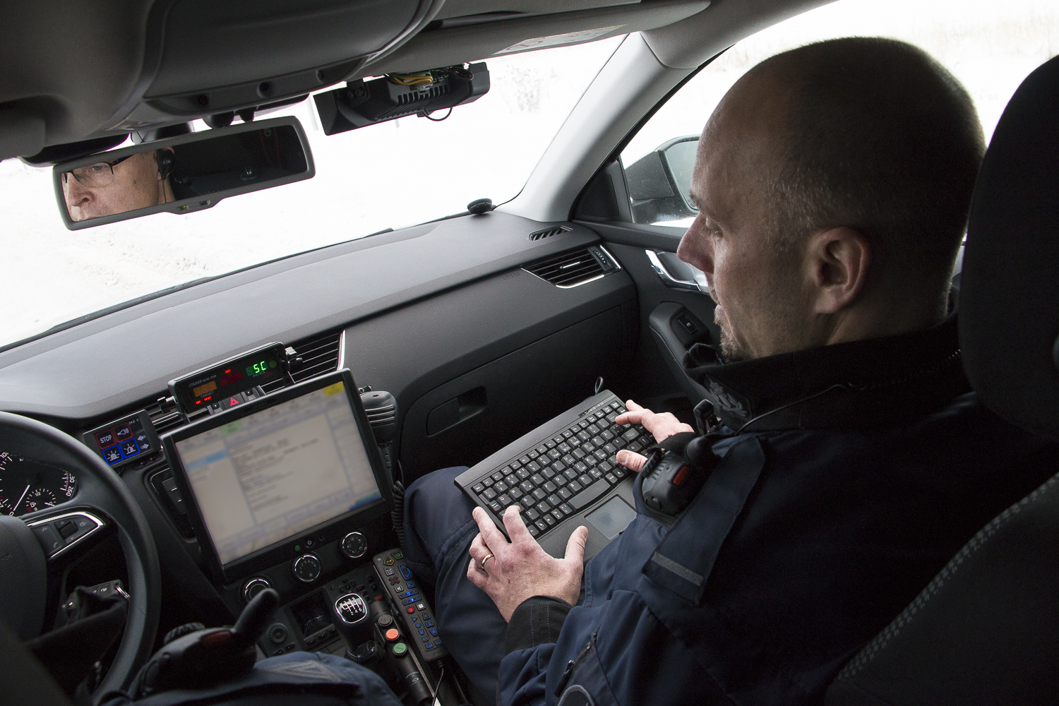 ”Rekisterinumeron perusteella otettiin tiedot ajoneuvosta ja omistajasta. Tietojen saamisen nopeus riippuu verkkoyhteyksistä. Jos on hyvä nettiyhteys, tiedot saadaan heti. Ongelmia tekniikan kanssa on melkein joka vuorossa.”