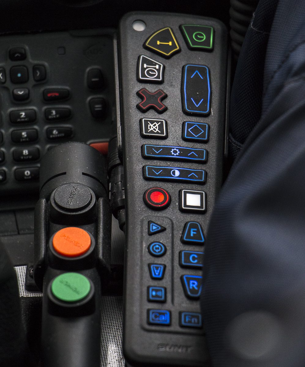 Kameroihin kytketty rekisterikilpien lukulaite tunnistaa autojen rekisterinumerot videolta. Etupenkkien välissä on näyttö, jolla jatkuvasti päivittyvä rekisterinumeroiden lista juoksee. Miettinen valitsee listalta rekisterinumeron ja painaa enteriä.